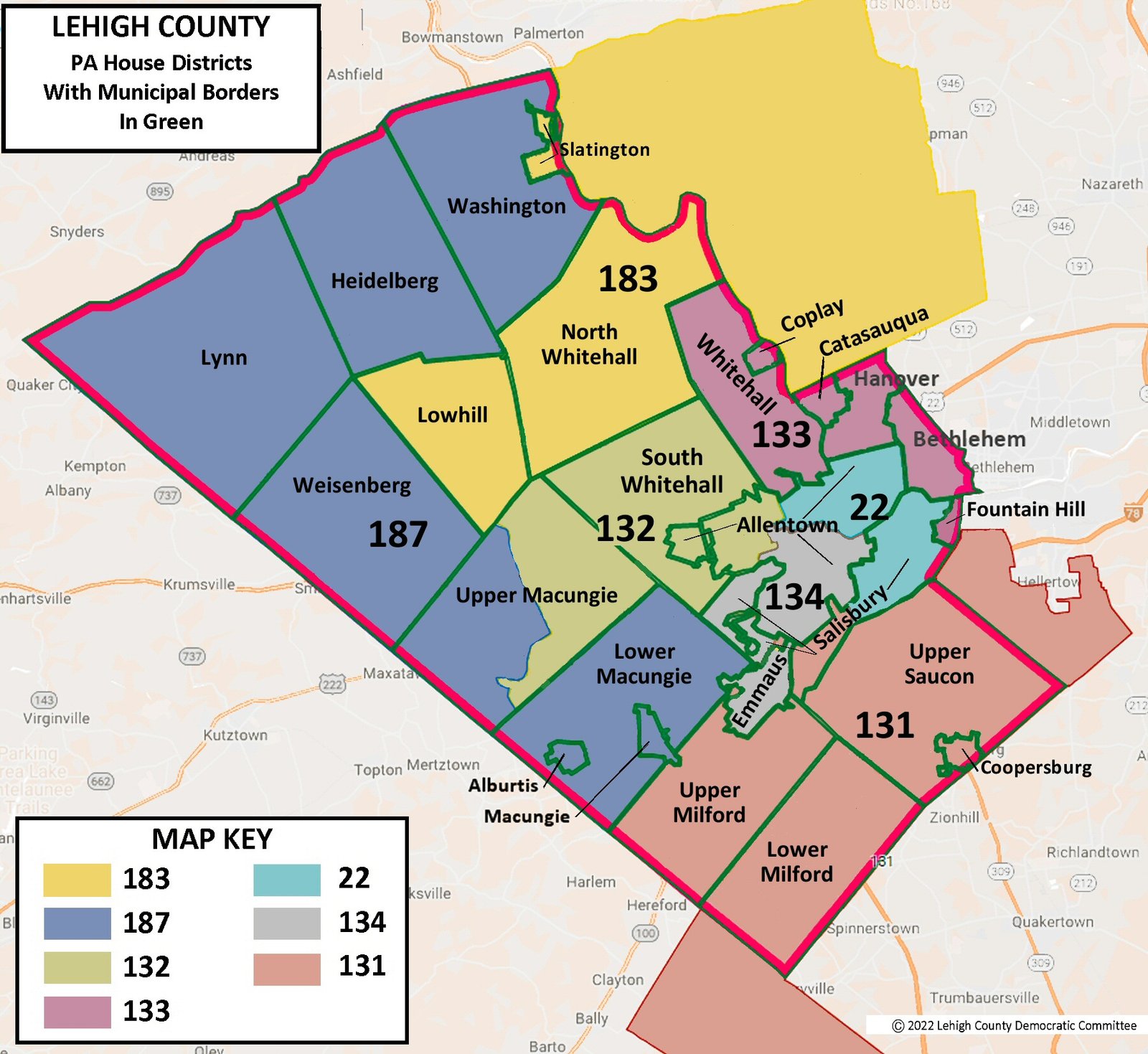 House Districts are COLOR CODED and correspond to the PA House Map on this page.